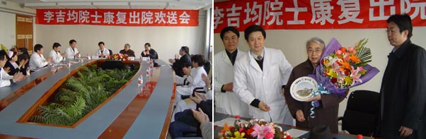 李建军同志代表中心党政领导和广大医务工作者,祝愿李吉均院士回归社会后,在繁忙工作之余,一定要注意继续加强锻炼和康复,保护好自己的身体,争取在我国自然地理研究方面取得更大的成就,为我国培养出更多、更优秀的地理研究科技人才,桃李芬芳满天下!